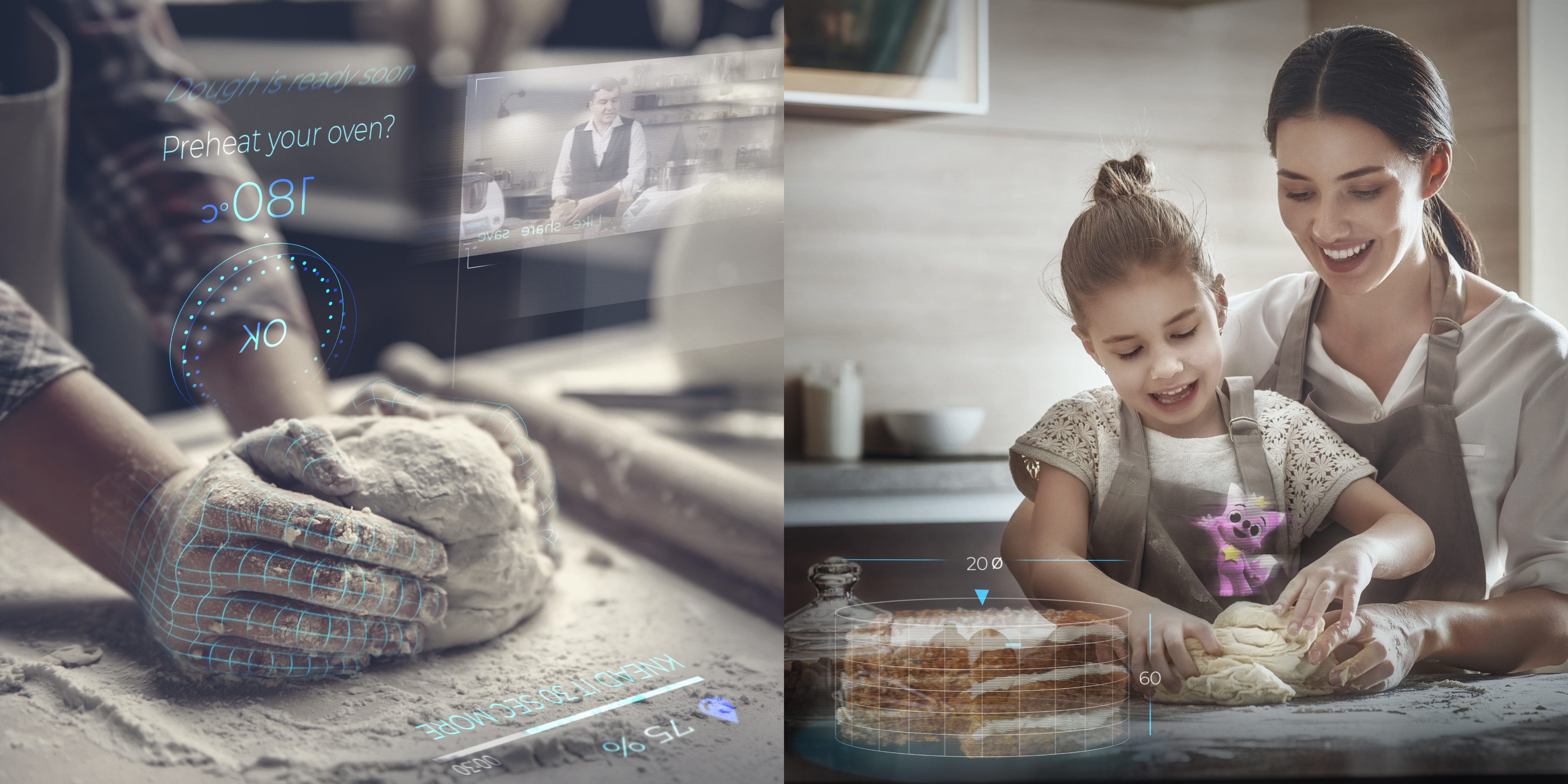 In this vision, children cook alongside their favourite animated characters while smart interfaces help parents manage oven timers and temperature controls with intuitive gestures. The kitchen becomes not only a cooking space but an interactive learning and bonding environment.
