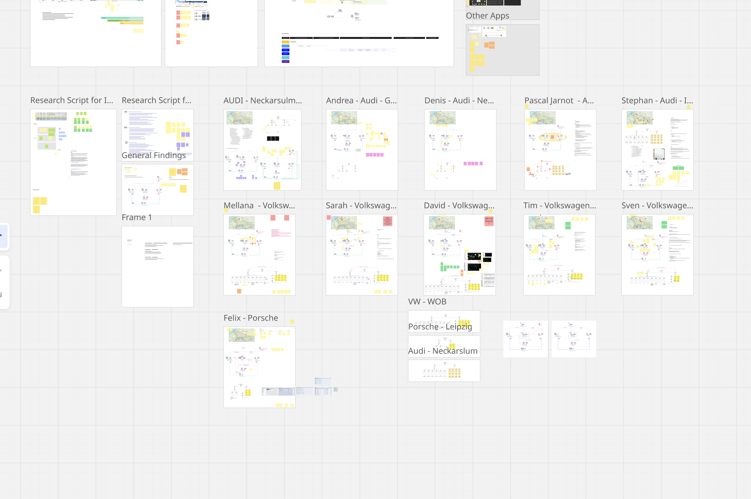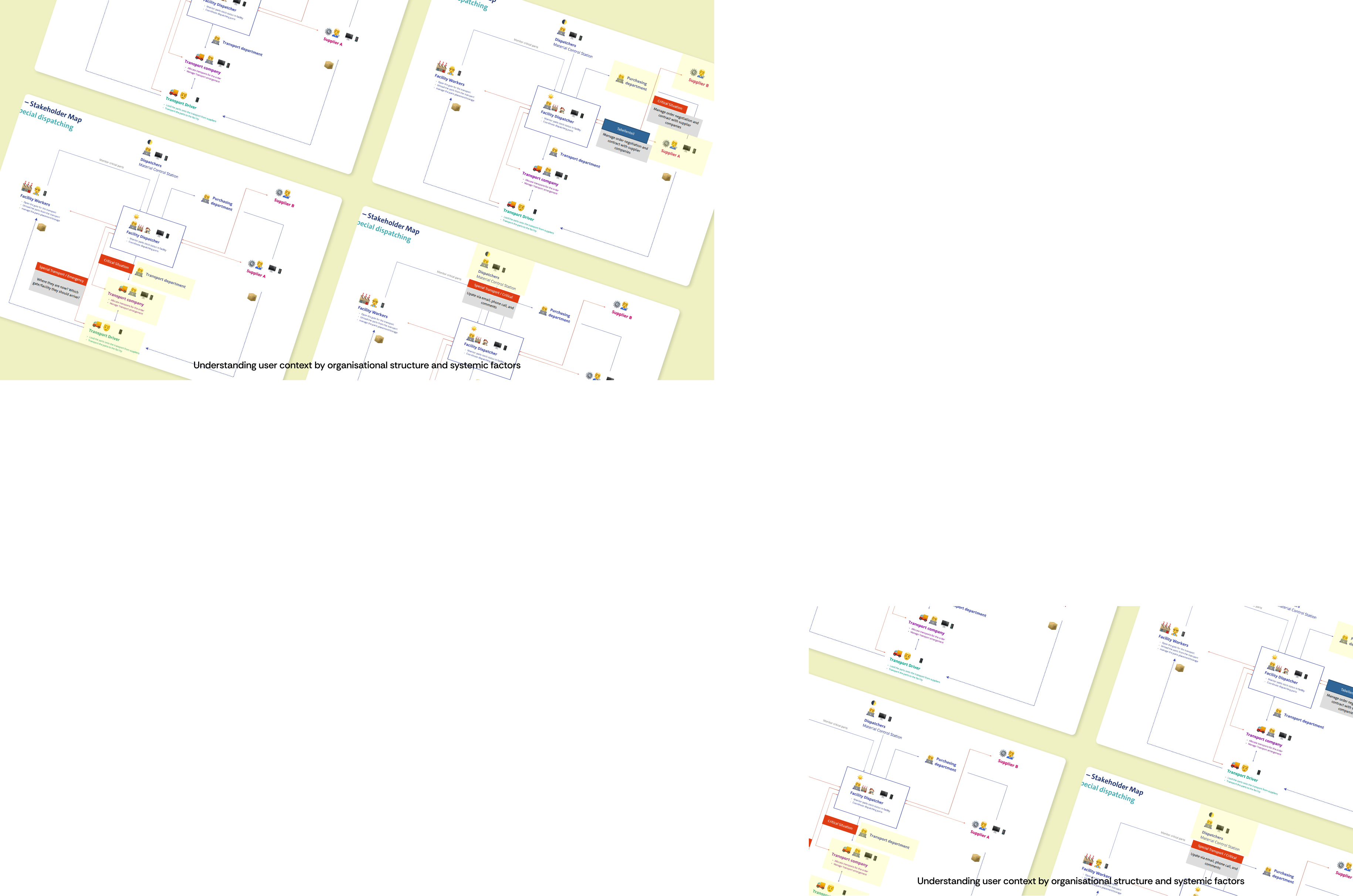 We asked multiple questions about their daily process and digital and physical touch points in identifying part situation and shadowed their daily work over three days. Afterwards, we sat down and mapped their work processes and visualised the stakeholder map in Miro.