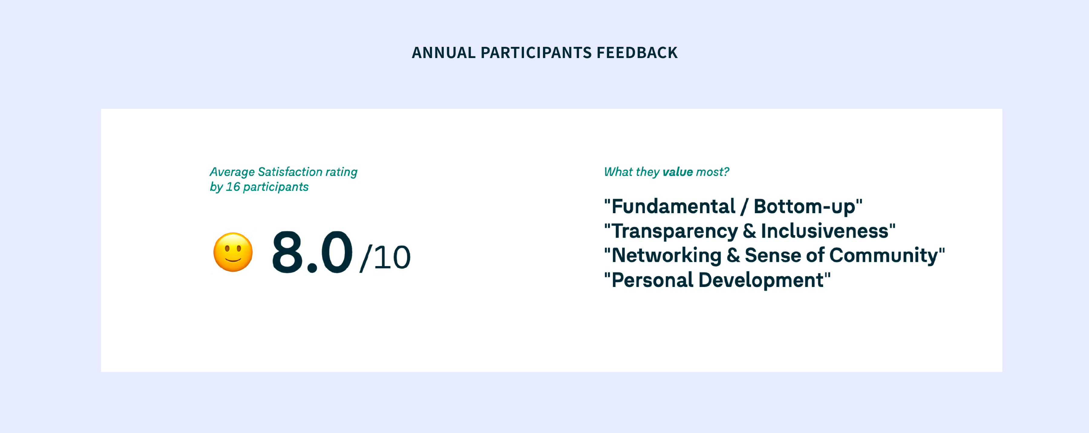 Over three years, we held biweekly sessions, only four were ever cancelled. That consistency, more than any single event, built trust. It showed we were serious, reliable, and here for the long haul. Change doesn’t happen in a single push; it’s about shaping the conditions for others to join in, when they’re ready.