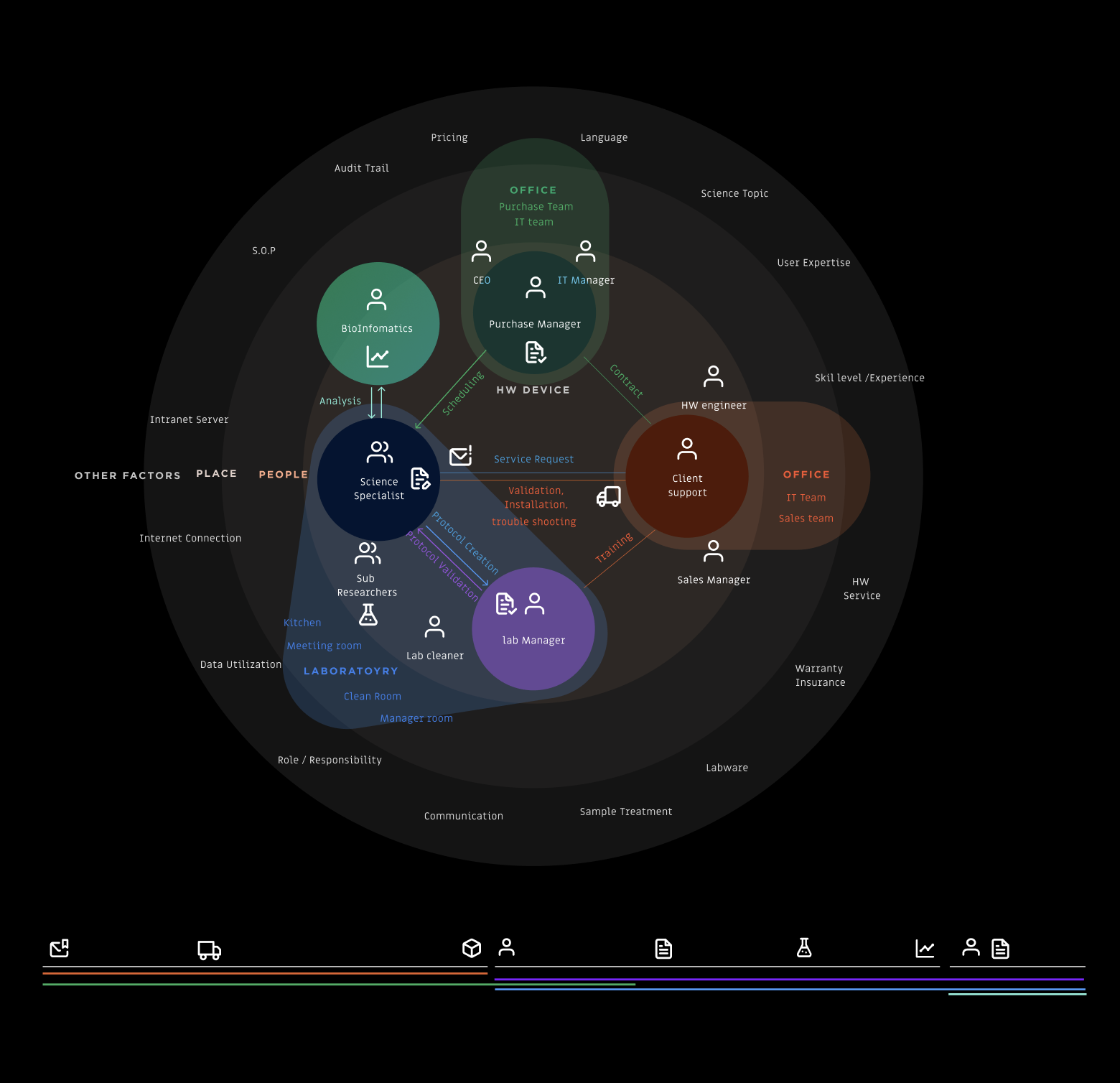 To gain firsthand insight, I spent a full week in a working lab, observing workflows and shadowing scientists, engineers, and supervisors. Based on that the complete user journey with stakeholder landscape was defined from equipment delivery and onboarding to independent use.